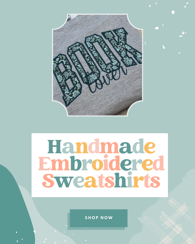 Book Lover Applique embroidered Sweatshirt or Hoodie