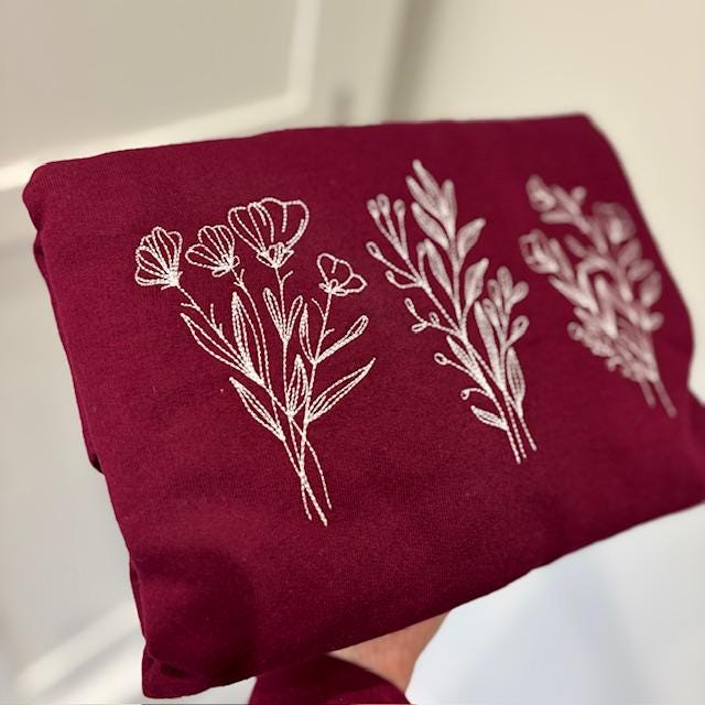 Wildflower Embroidered Sweatshirt: Burgundy Medium 42” Chest